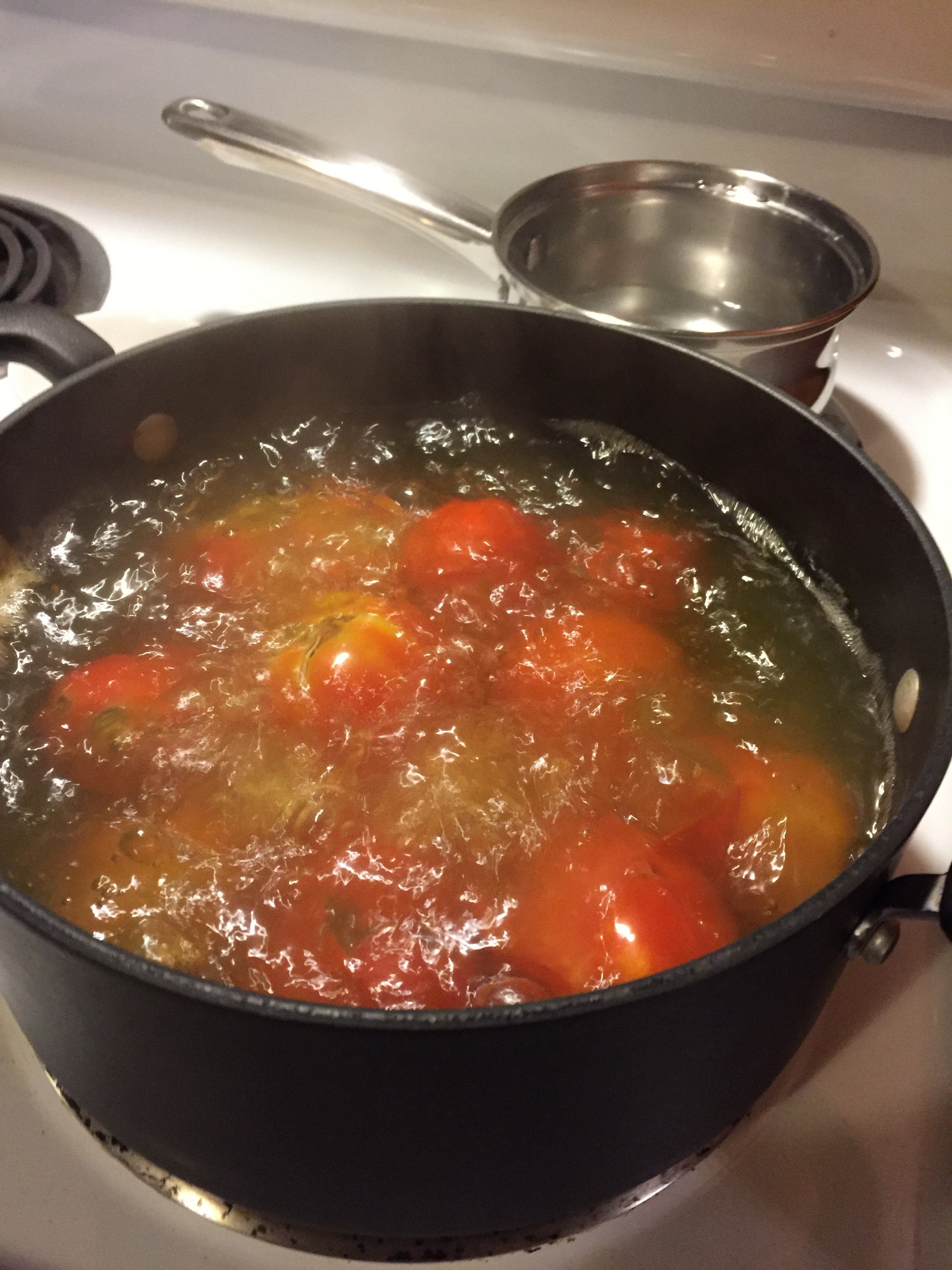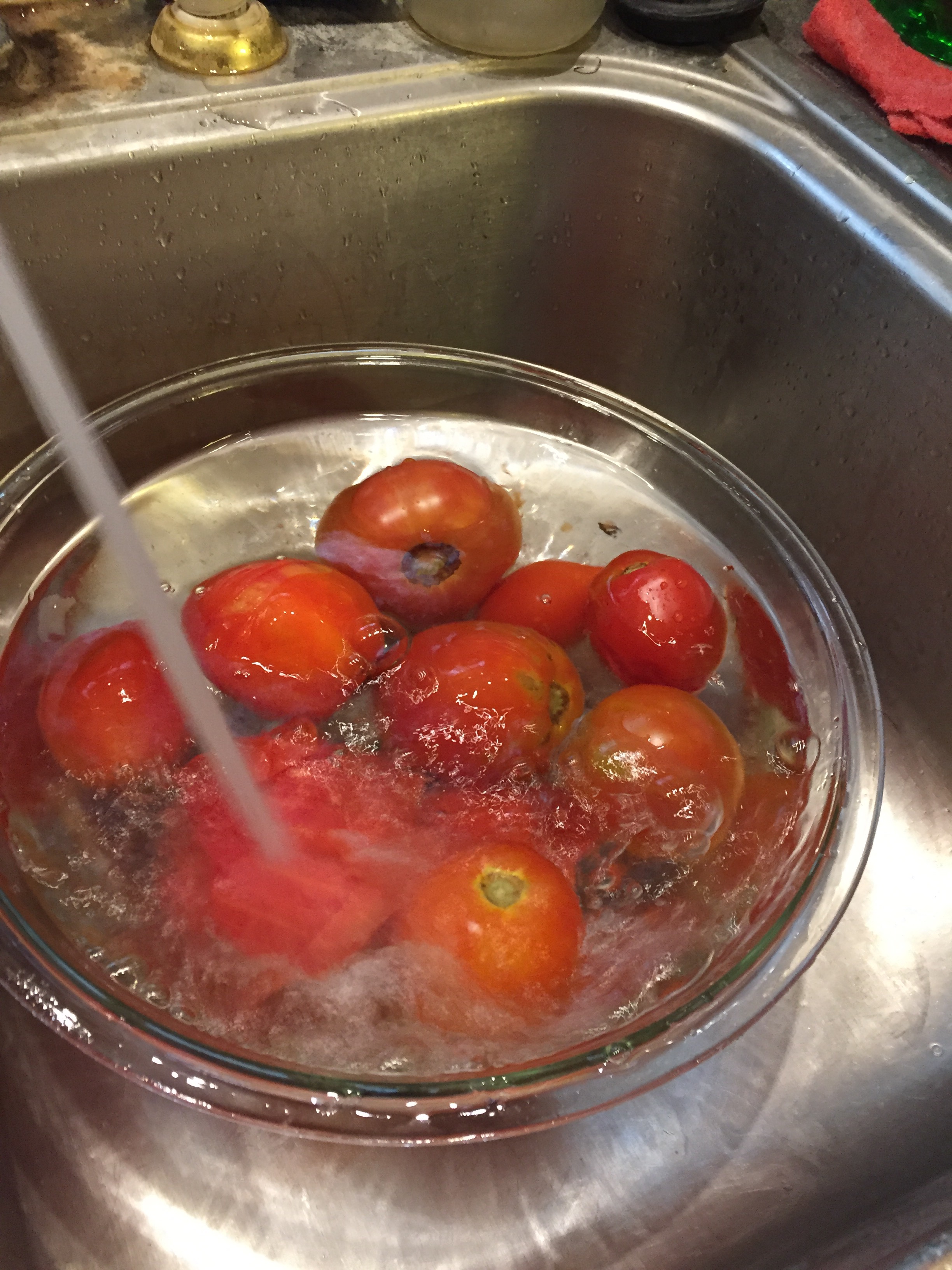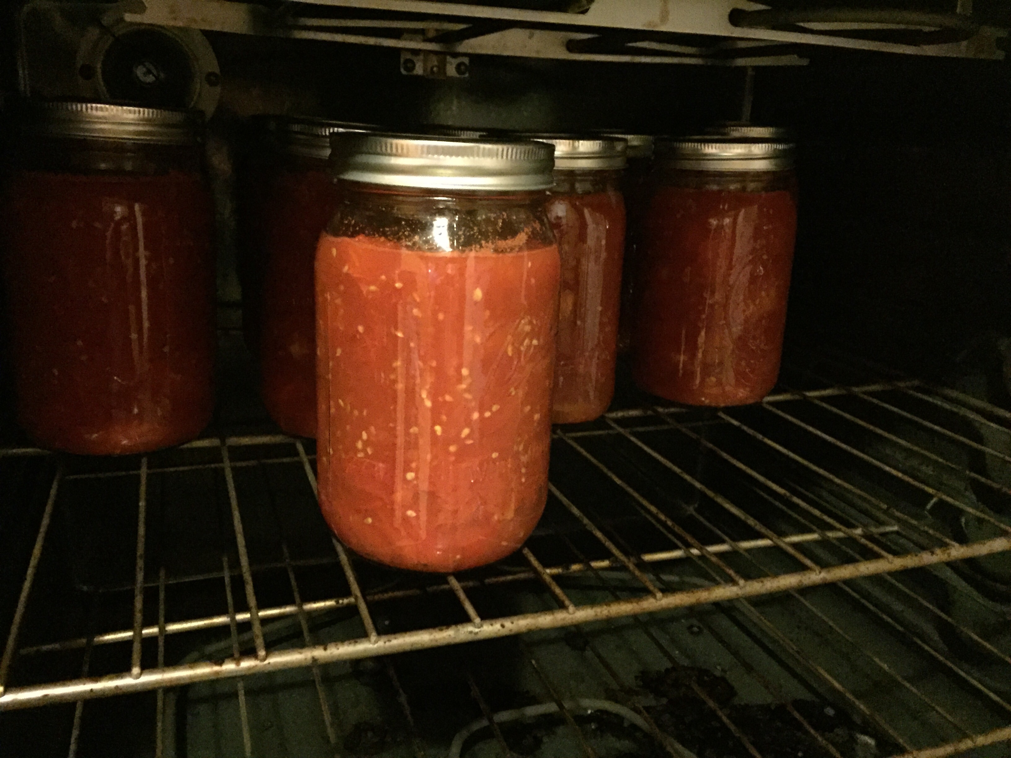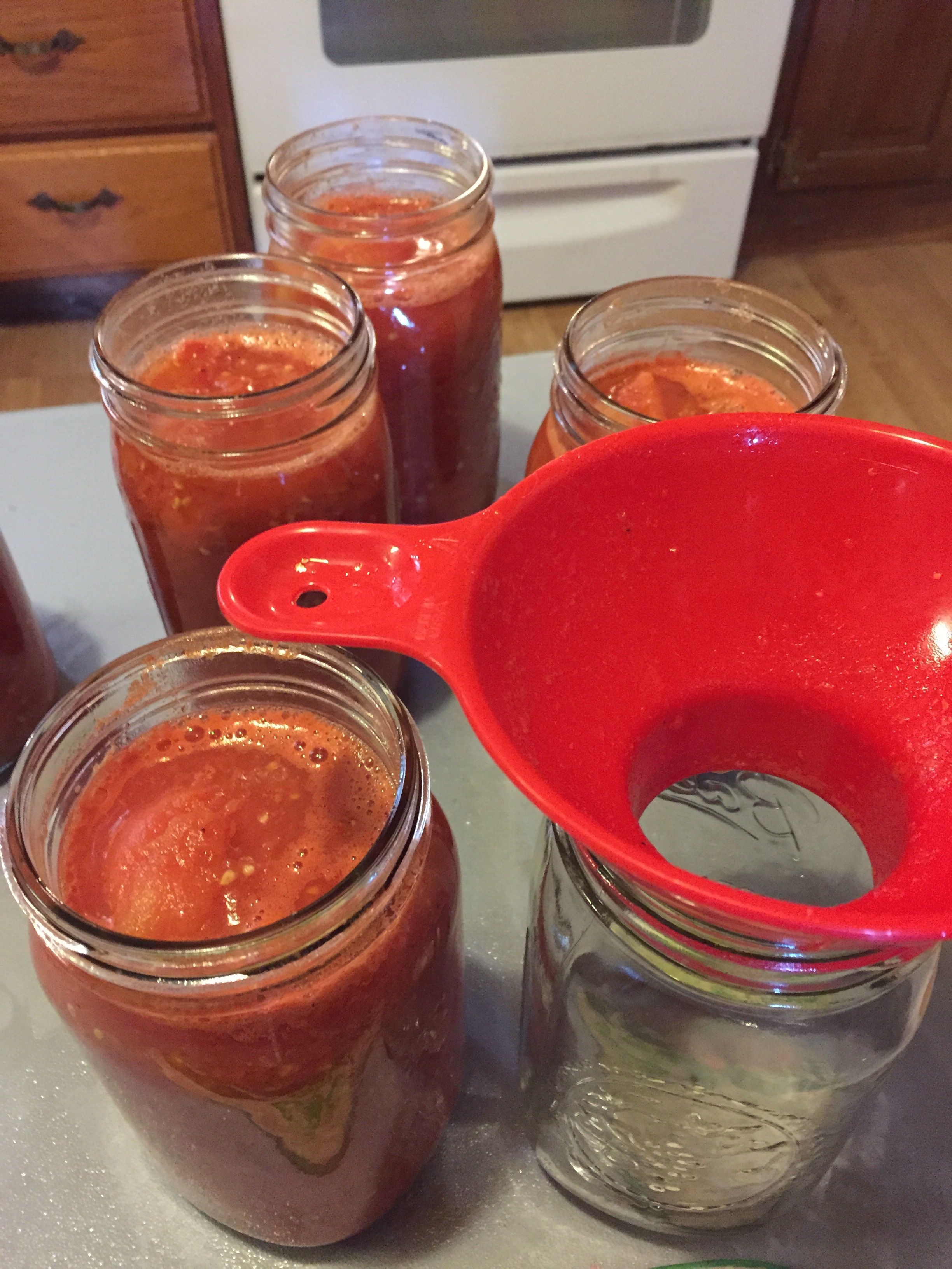 It is time to can tomatoes. Finished up this afternoon with twenty one quarts total. My mom provided the tomatoes and my wife, Melinda and I canned them.