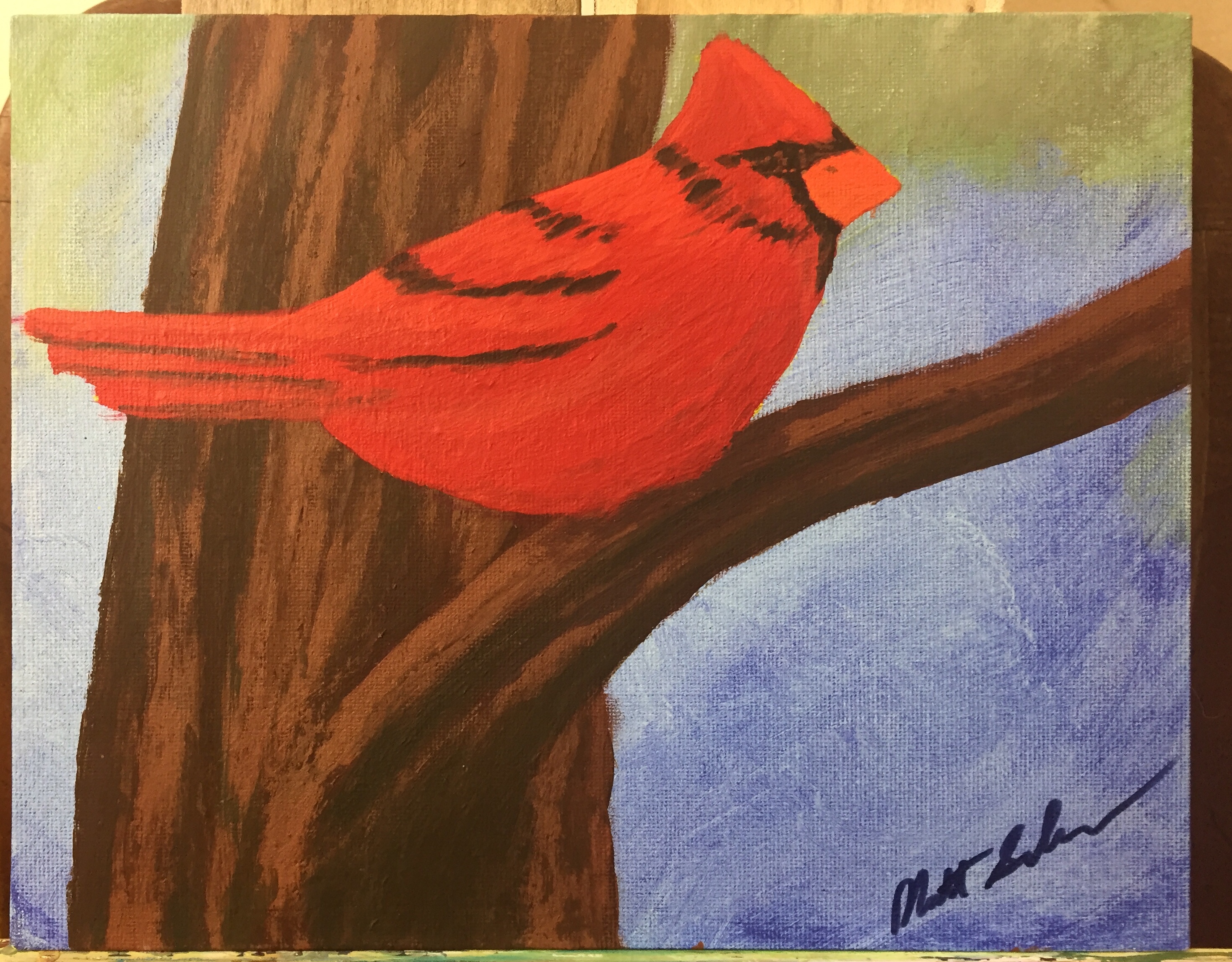 Some more practice with my cardinal. It is a smaller canvas board 8″ by 10″. I am off work for Easter weekend so do want to wish everyone a happy Easter. I have some other painting projects and some outside stuff like putting up a fence with t-posts and electric wire for our horse.