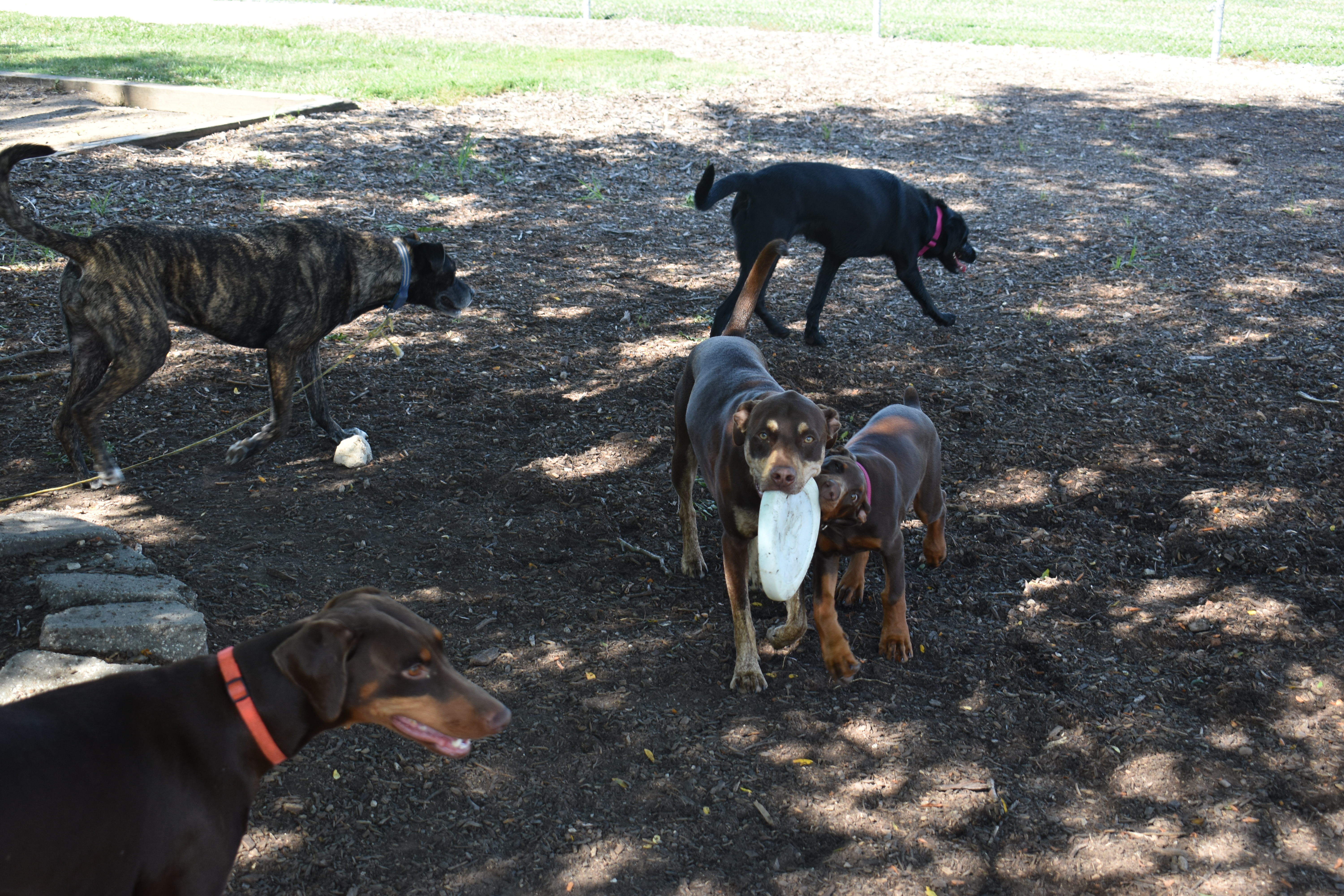 At the dog park in Jefferson City MO. We had Ulfrik and Jango with us. And some others were there with their dogs. Used my Nikon D3500 to take pictures. And edited a bit afterwards. I should mention Ulfrik is a mixed breed dog and Jango is a doberman puppy.