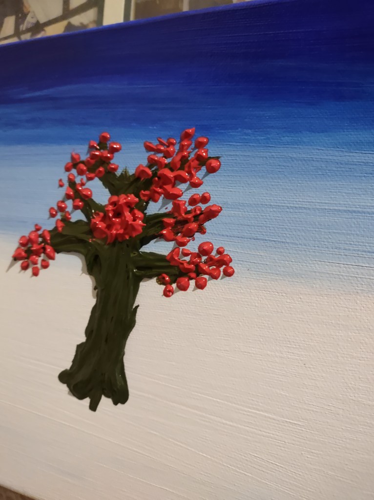 So I decided to start with what’s called thick acrylics. Trying a sureal tree. Hard to get the 3d look in the picture. This is the tree in an early stage of design…. Second picture is my woodworking project.